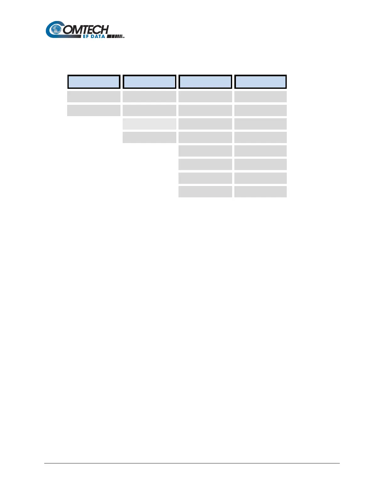 The following menu tree illustrates the options available via the Base Modem Web Interface: