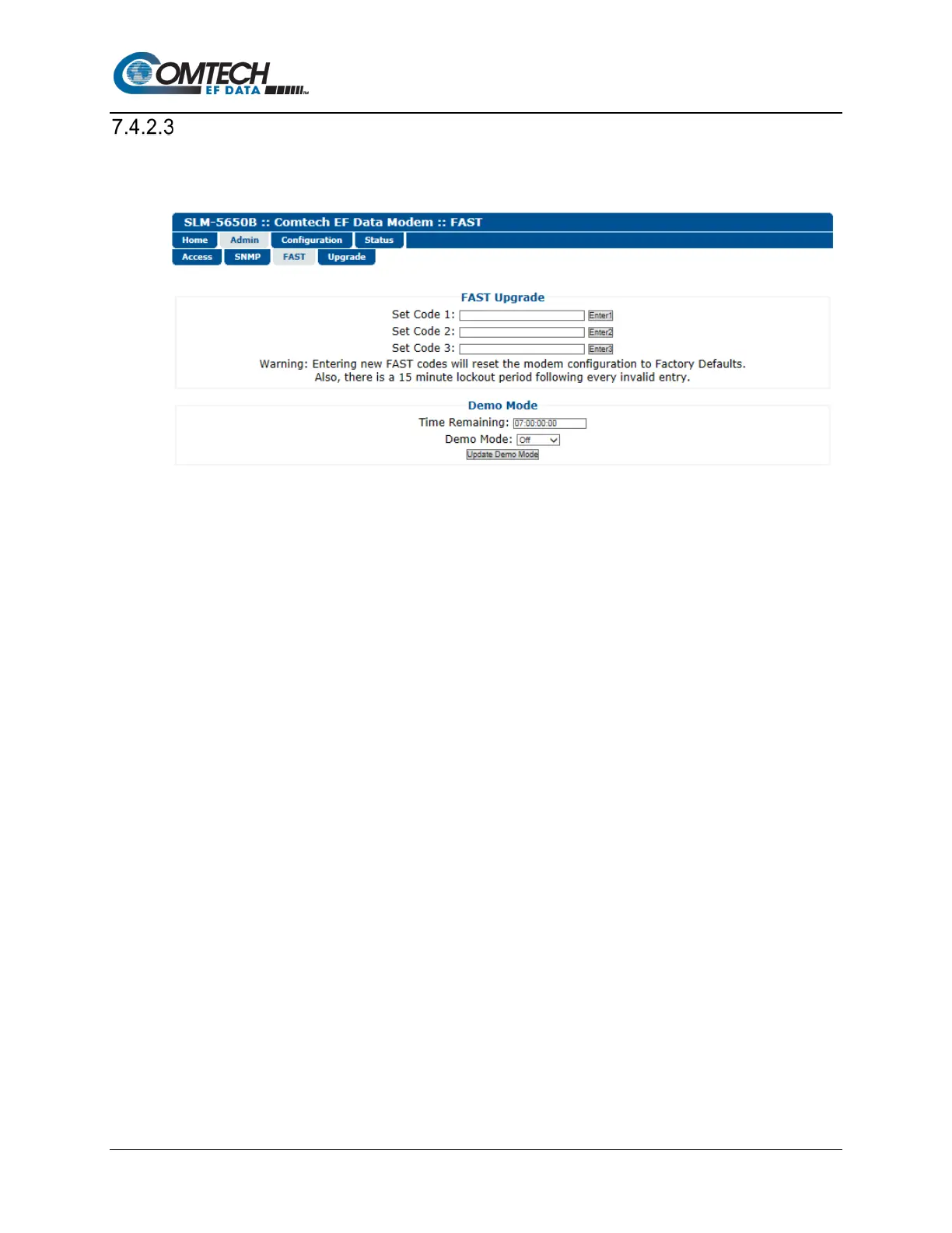 Comtech EF Data SLM-5650B - Admin | FAST; Figure 7-4. Admin | FAST Page
