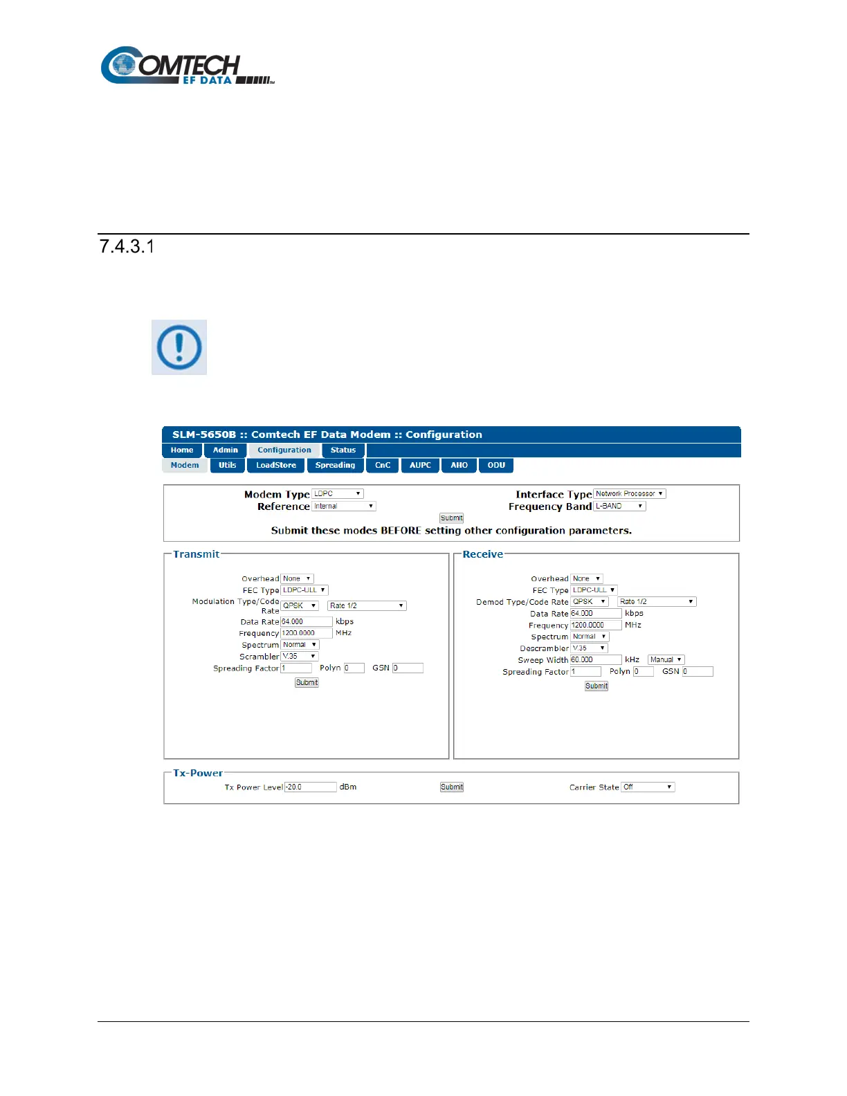 7.4.3 Configuration (Modem Configuration) Pages