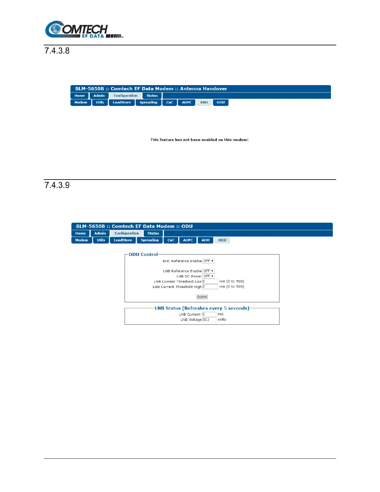 Use this page to enable the LNB power, LNB reference, and BUC reference.