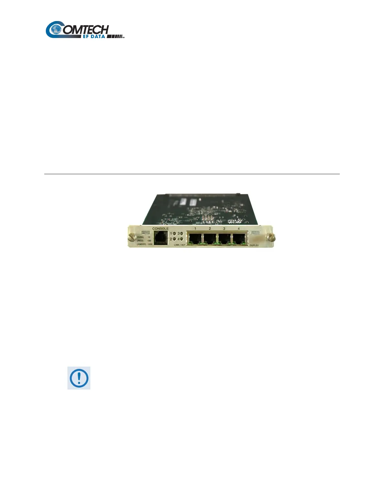 Interface” or the “card”), shown in Figure 8-1, is Comtech EF Data’s third generation IP router and