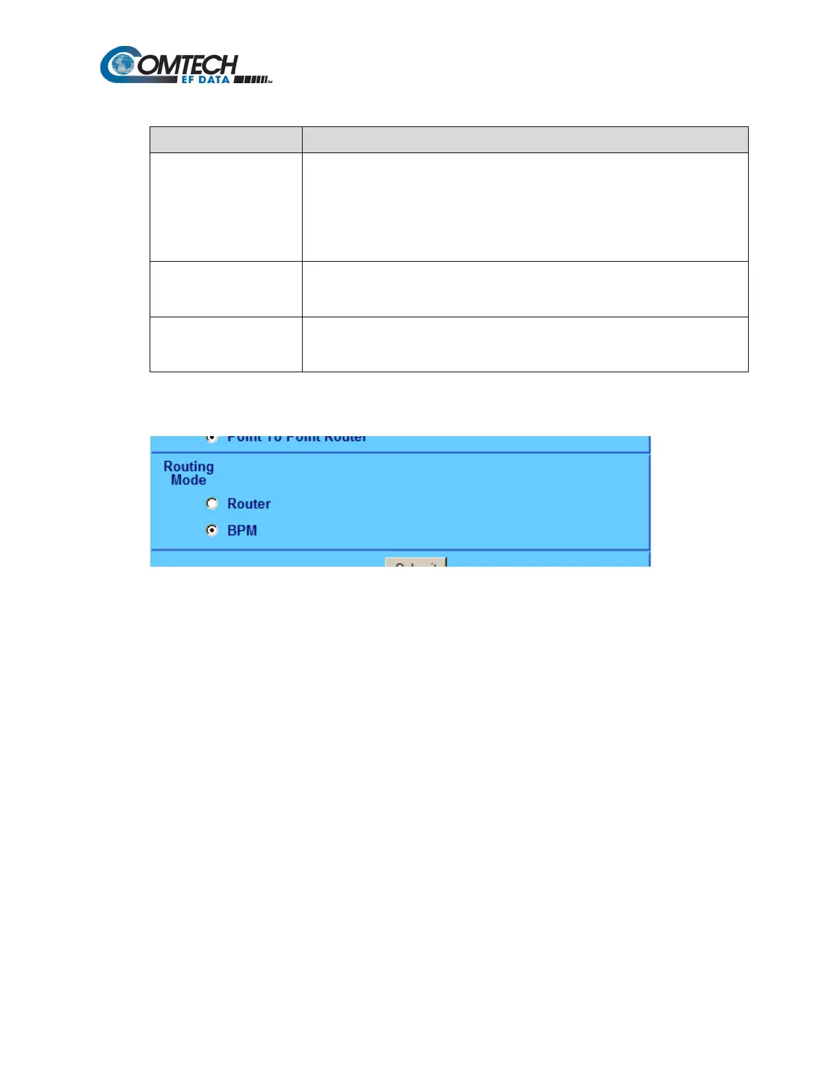 When the modem is operating in Router Mode, a number of Base Modem M&C