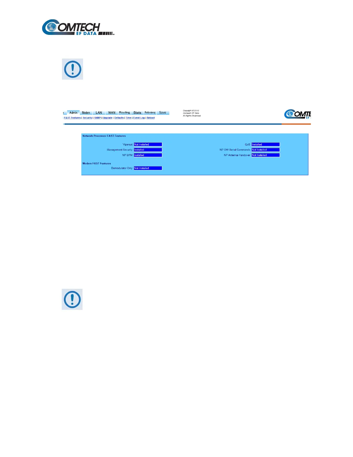 these options, a modem FAST code must be purchased by contacting Comtech EF Data Customer