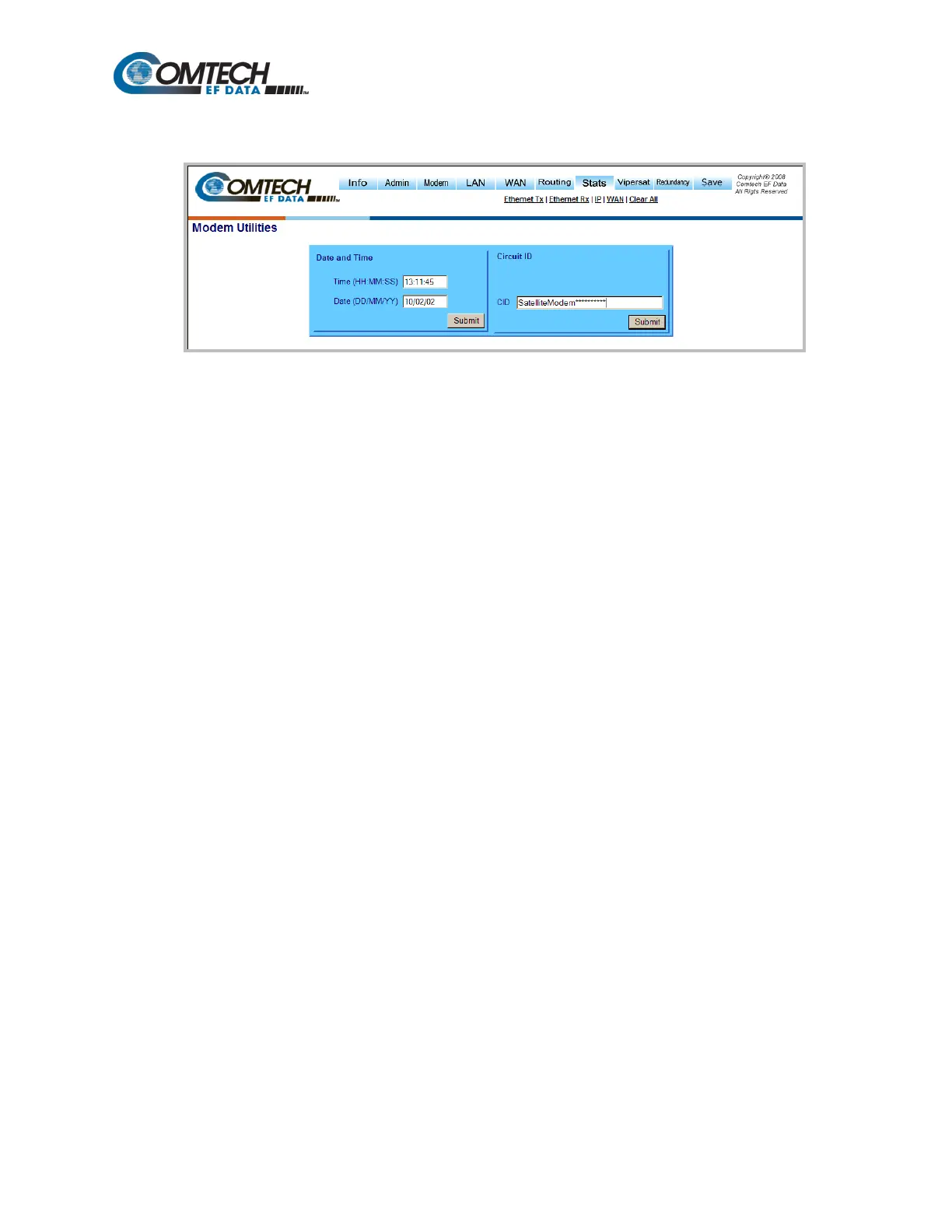 To set the Date and Time of the modem: