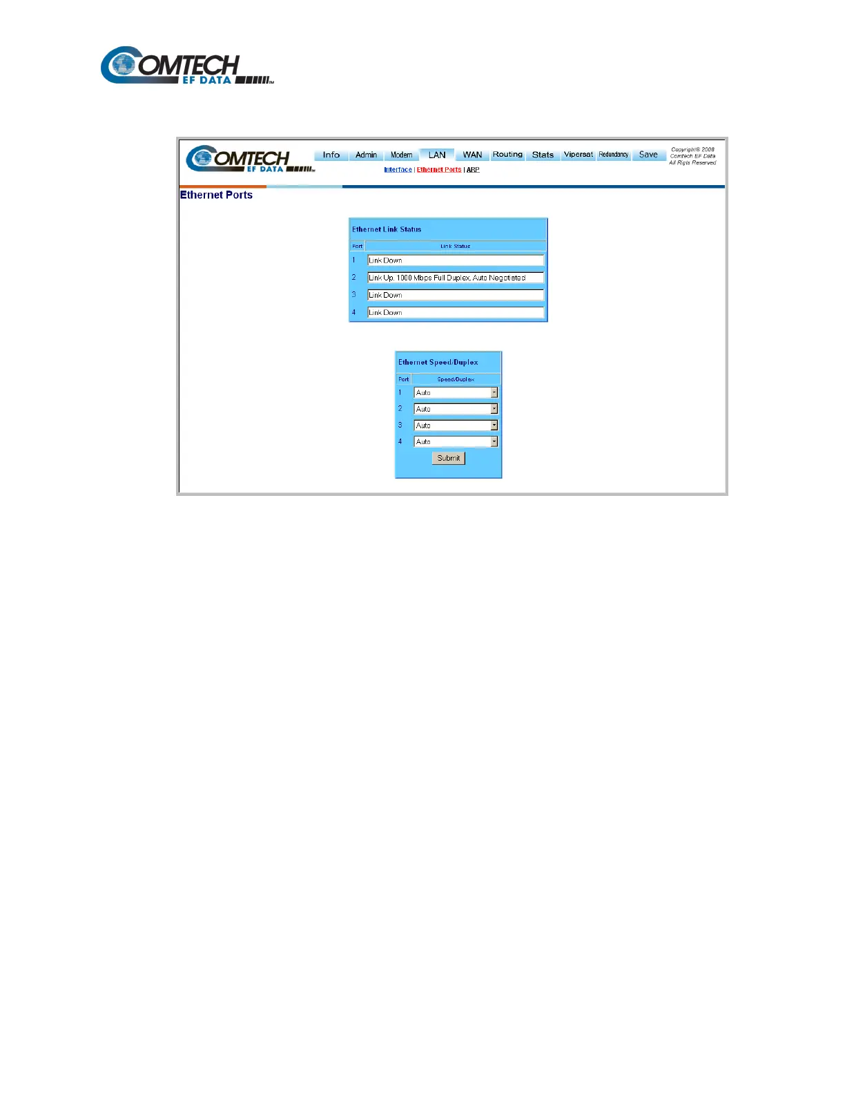 Use the ‘LAN | Ethernet Ports’ page (Figure 8-25) to view the current status of the Ethernet ports