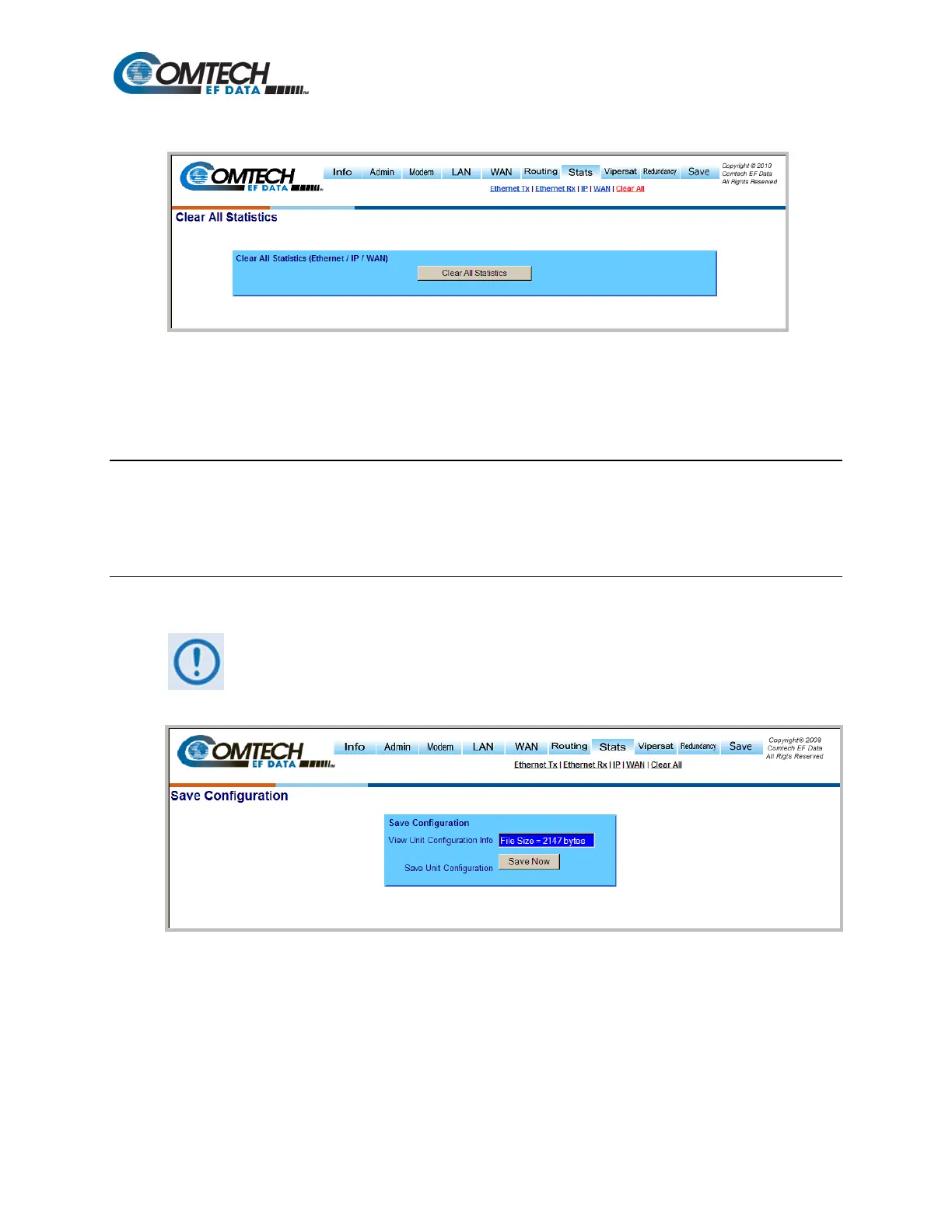 Use the ‘Stats | Clear All Statistics’ page (Figure 8-37) to simultaneously clear the statistics for the
