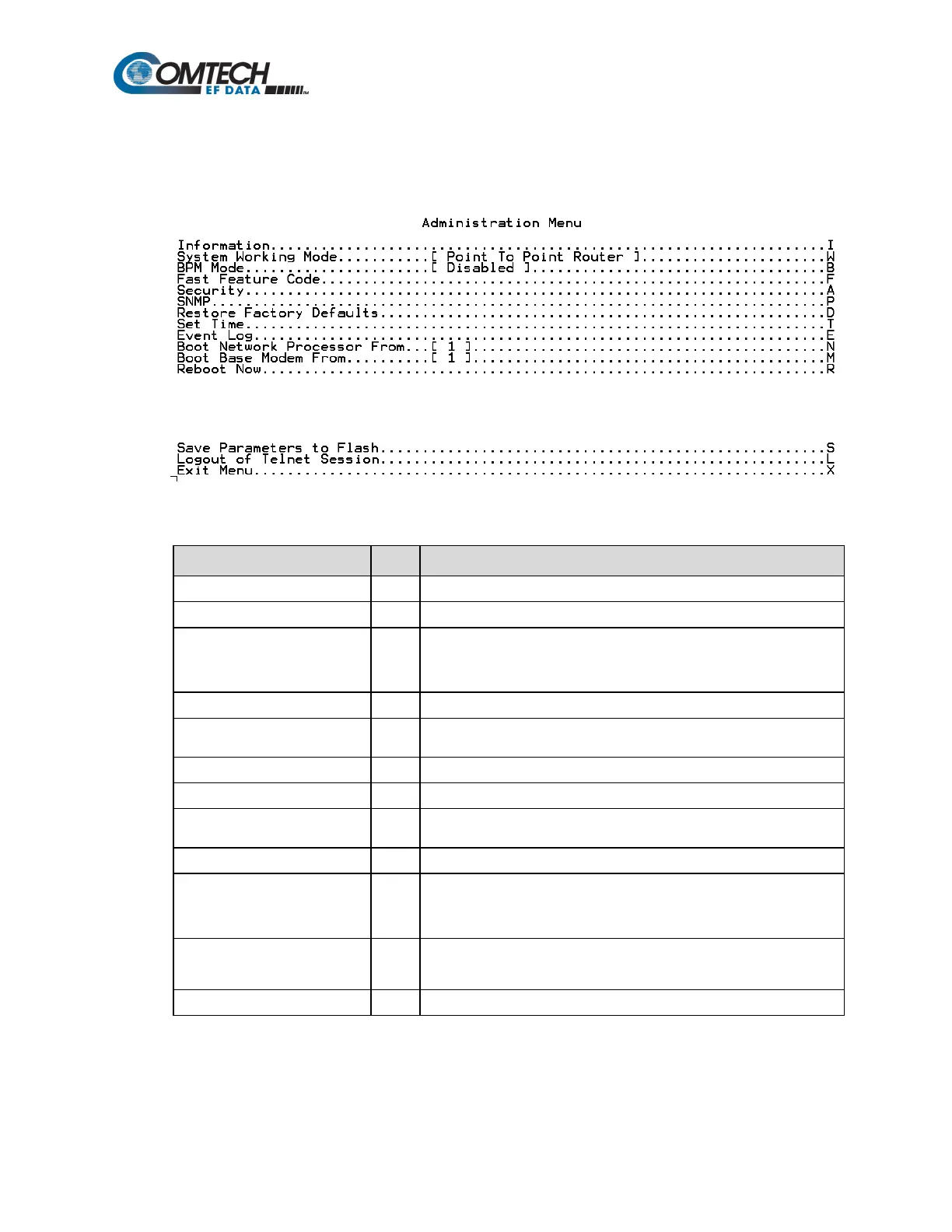 When the Administration Menu page is opened from the Main Menu, the following page appears: