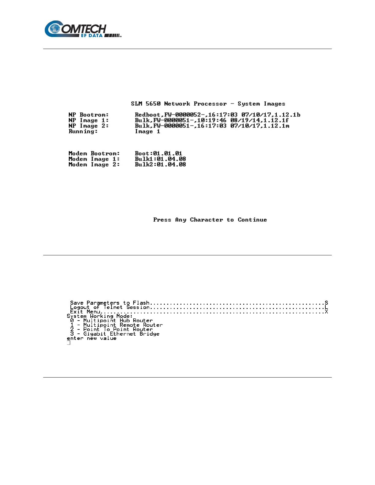 9.2.4.2 Administration Menu | System Working Mode (W)