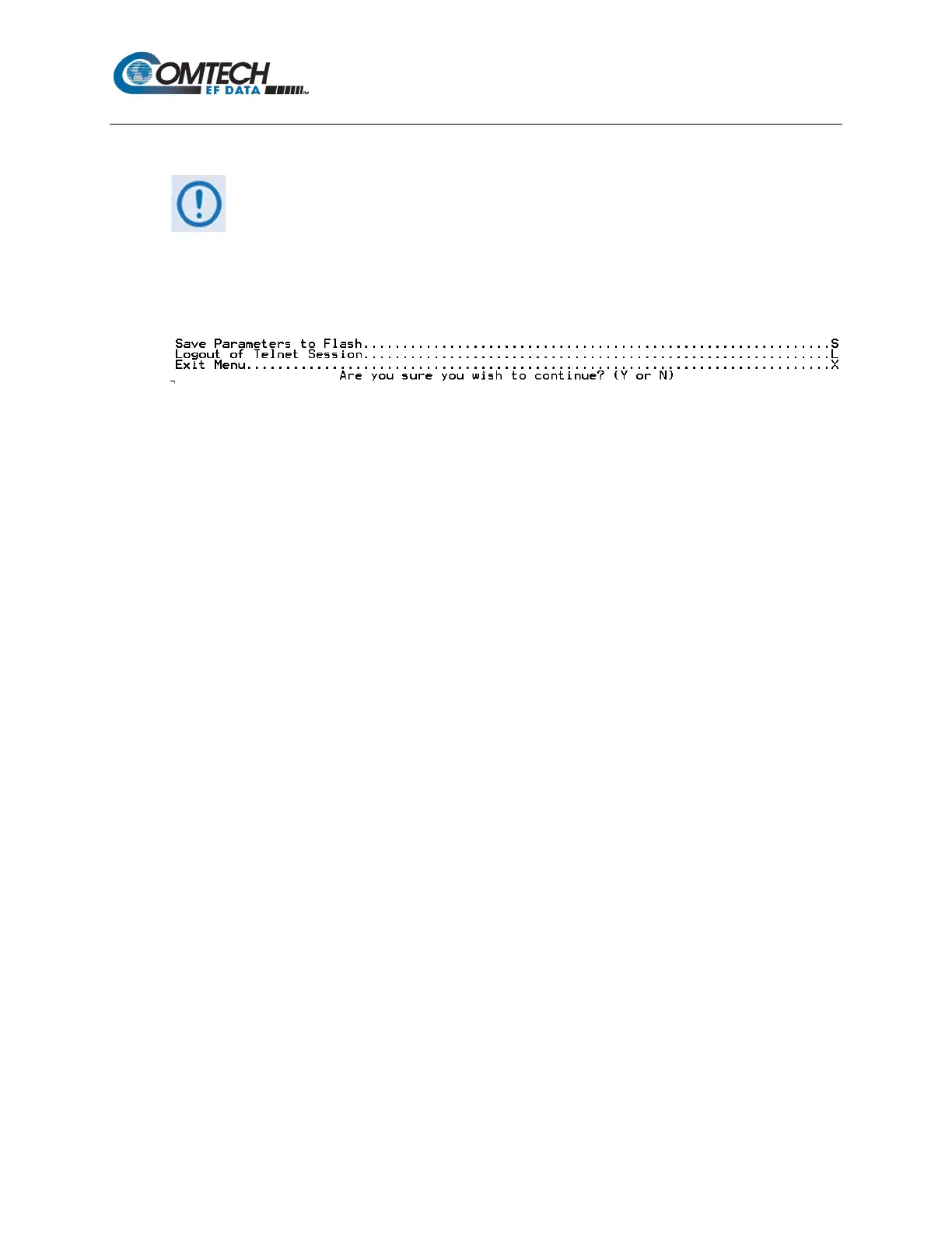 Note: Pressing ‘Y’ causes the entire modem to reboot; this includes the base modem, NP Interface,