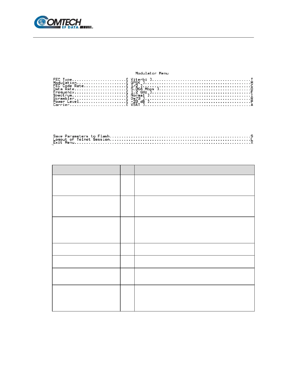 9.2.5.1 Satellite Modem Configuration | Modulator Menu (M)