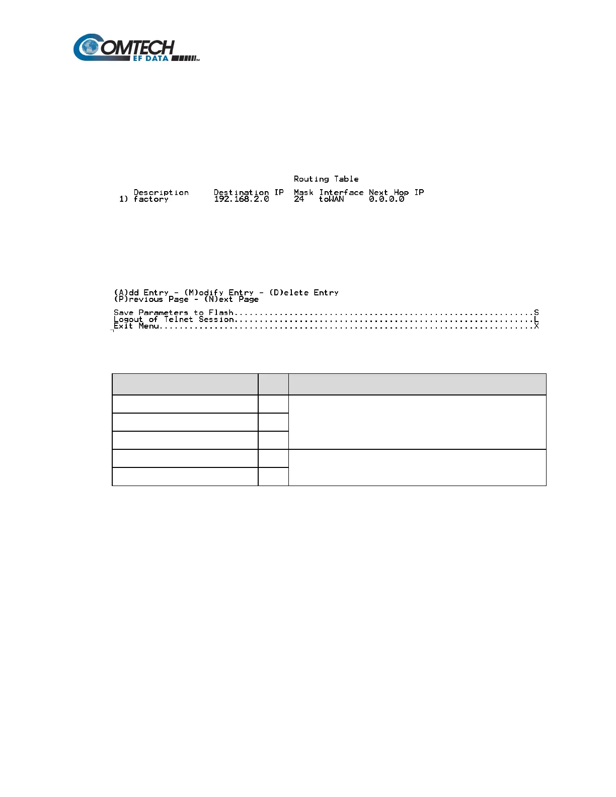 IP Module to route IP traffic over the satellite or to another device on the local LAN. Route entries