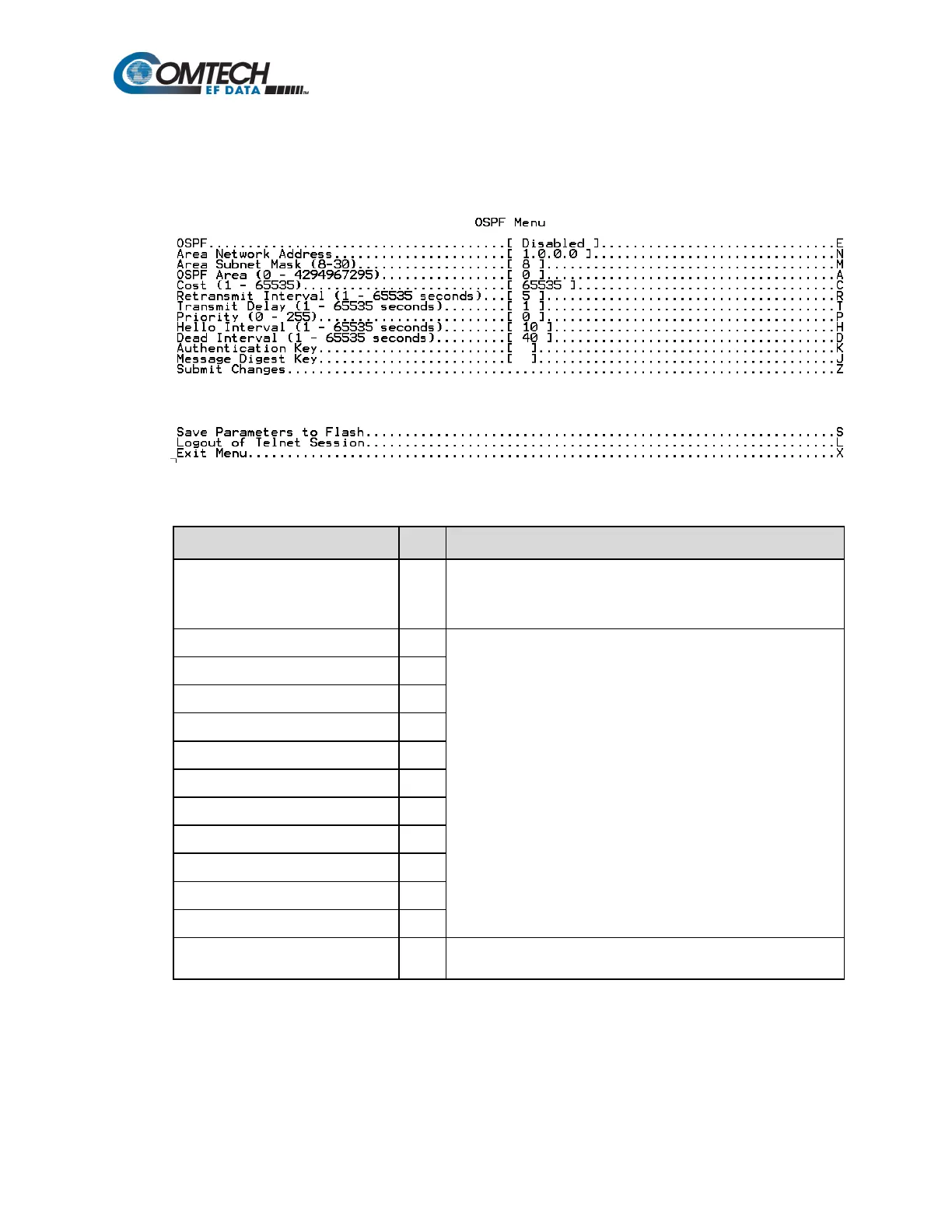When the OSPF Menu page is opened from the Main Menu, the following page appears: