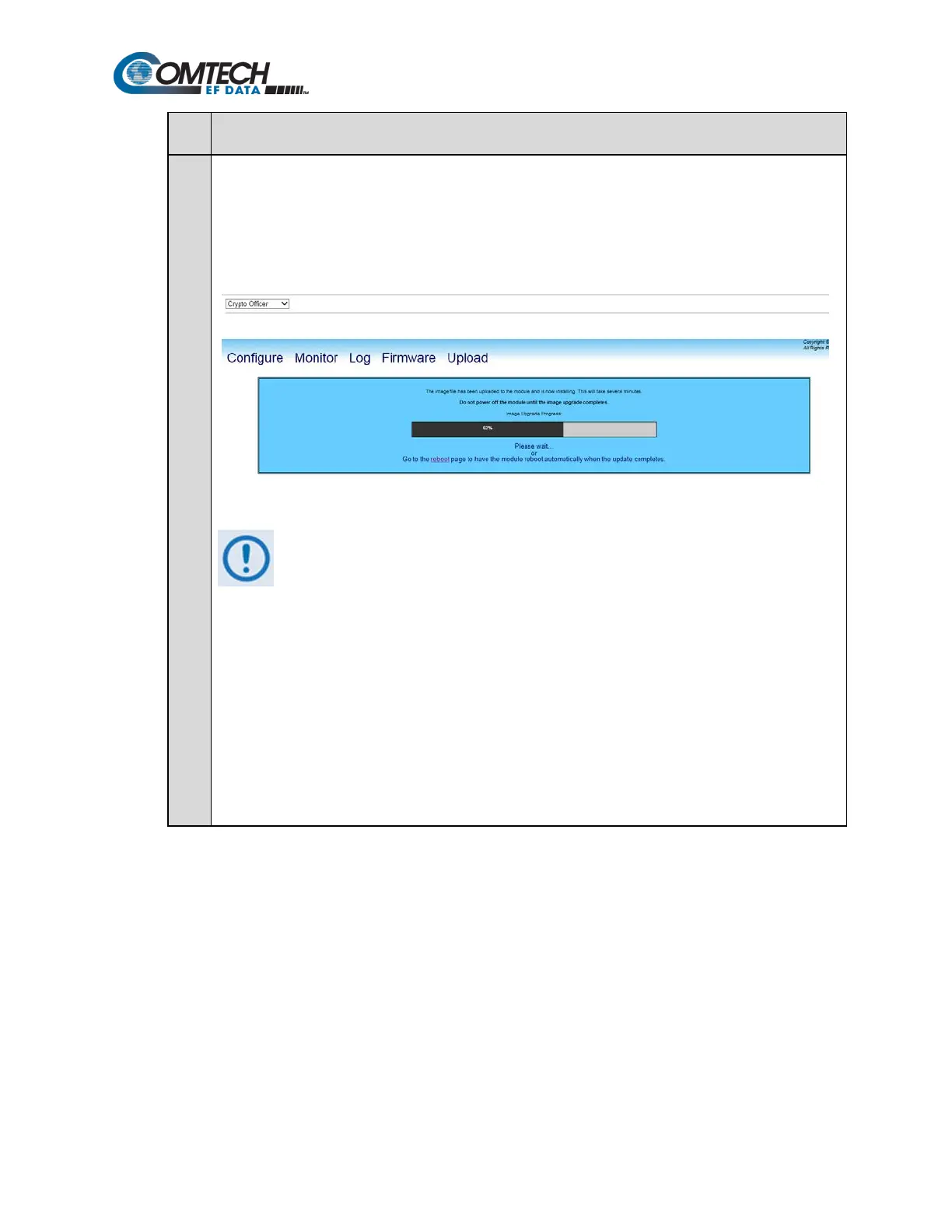 10 Wait while the file transfers. After Upload is clicked, the Image Upgrade Process page appears while the