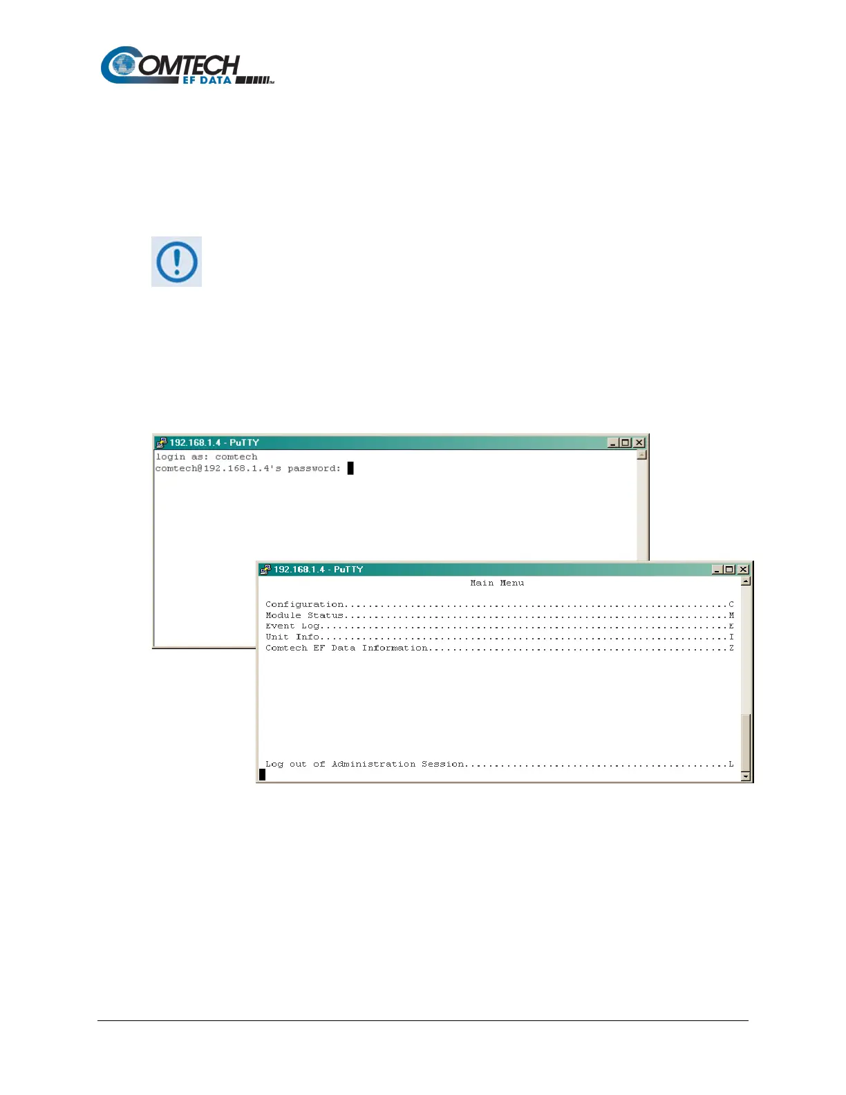 login name and password (the defaults for both are comtech). When the valid login and