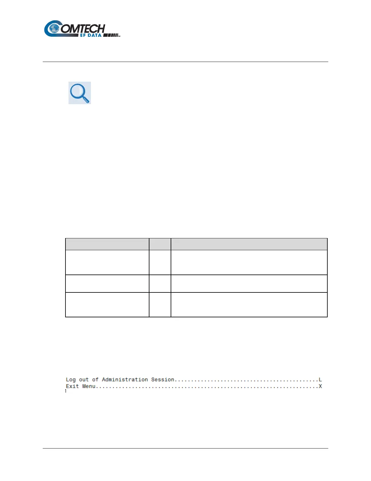 Satellite Modem’s front panel menus (see Chapter 5. FRONT PANEL OPERATION) and the