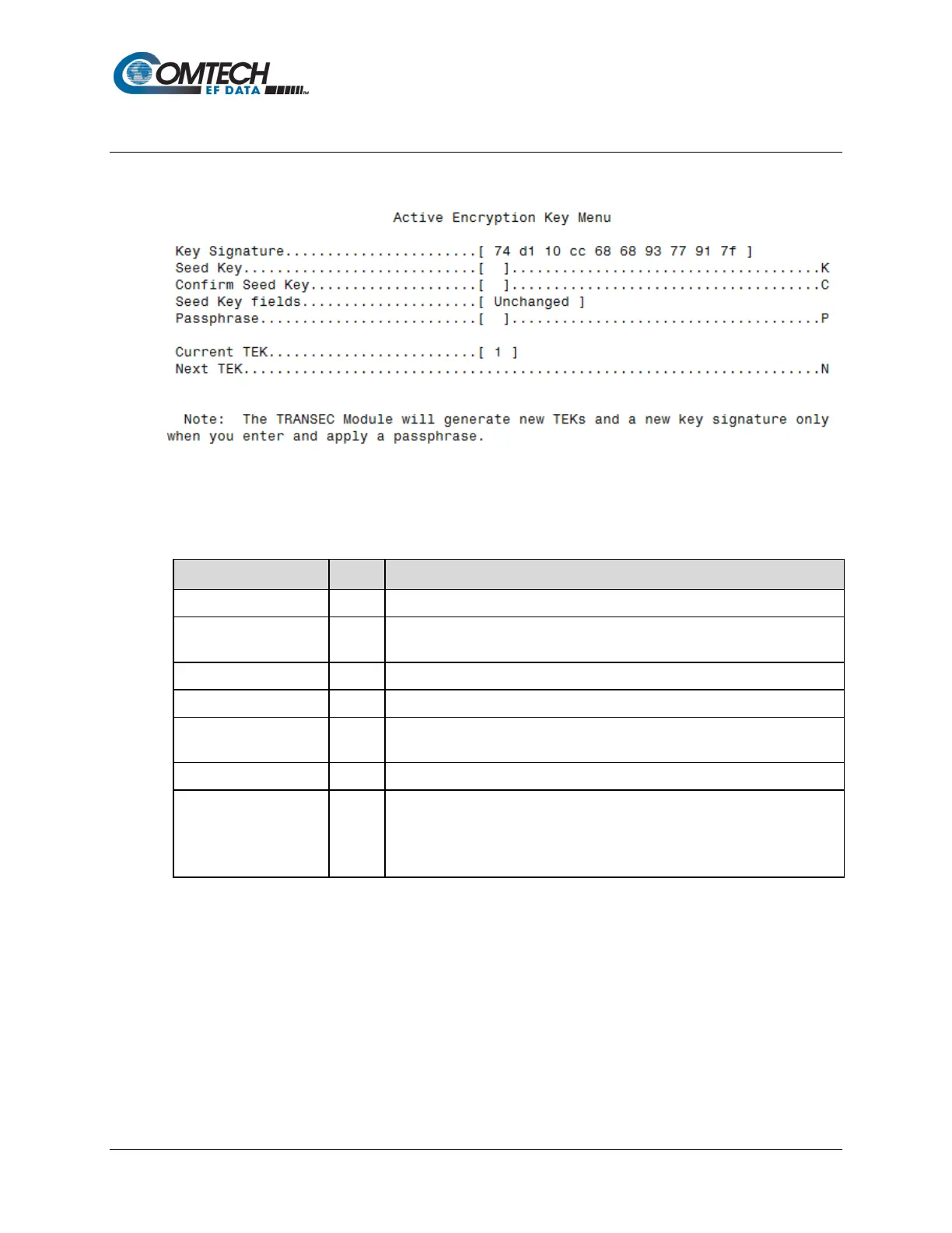 11.2.4.1 Configuration | Active Encryption Key Menu [A]