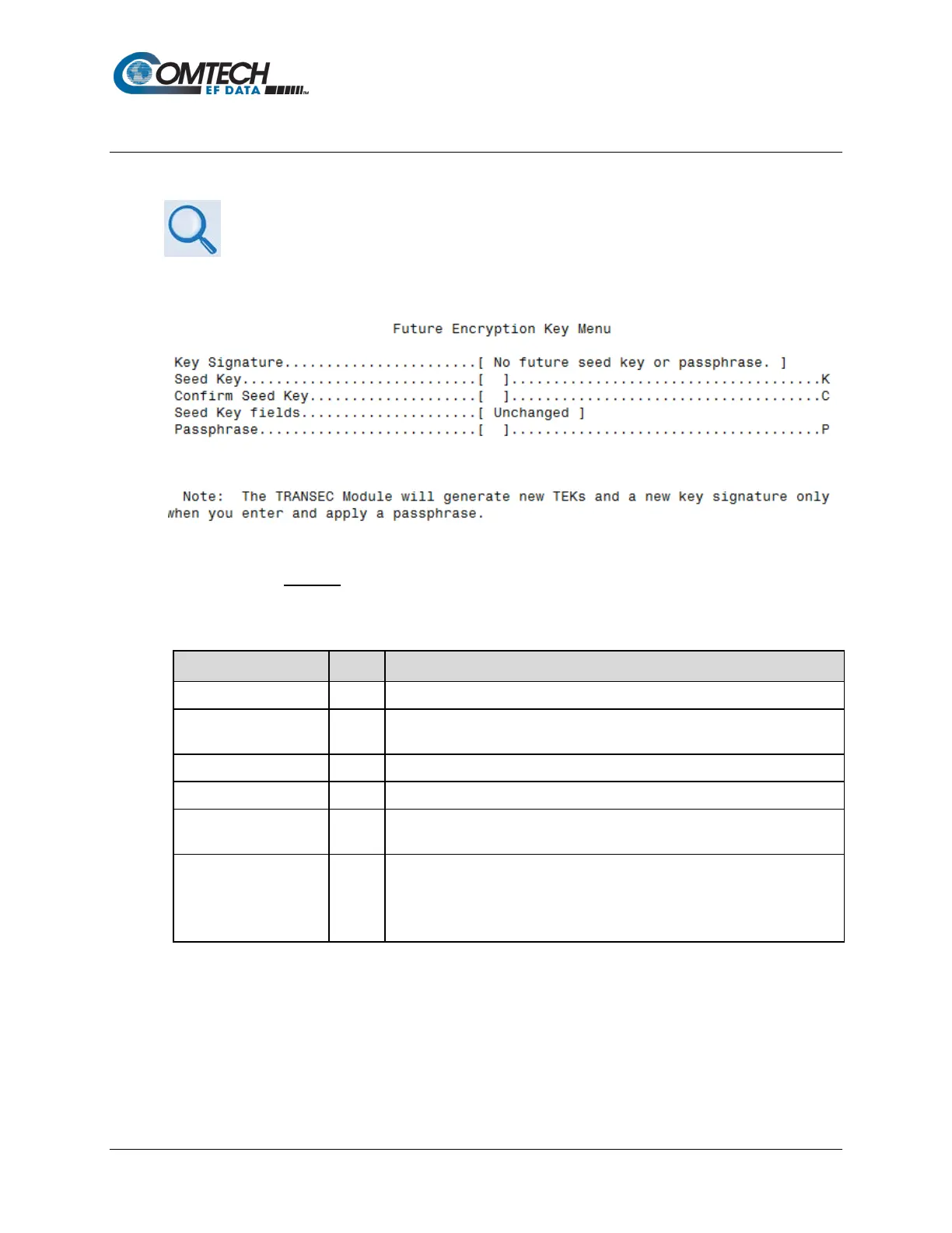 11.2.4.2 Configuration | Future Encryption Key Menu [F]