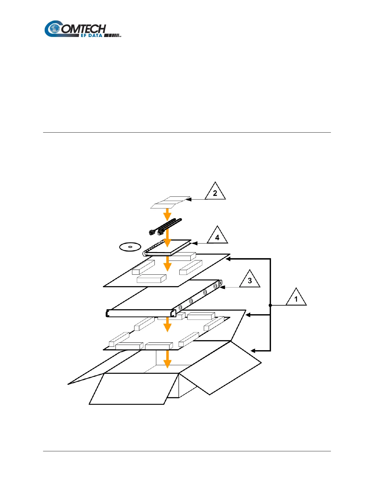 The SLM-5650B Satellite Modem, its Installation and Operation Manual, and its power cord were