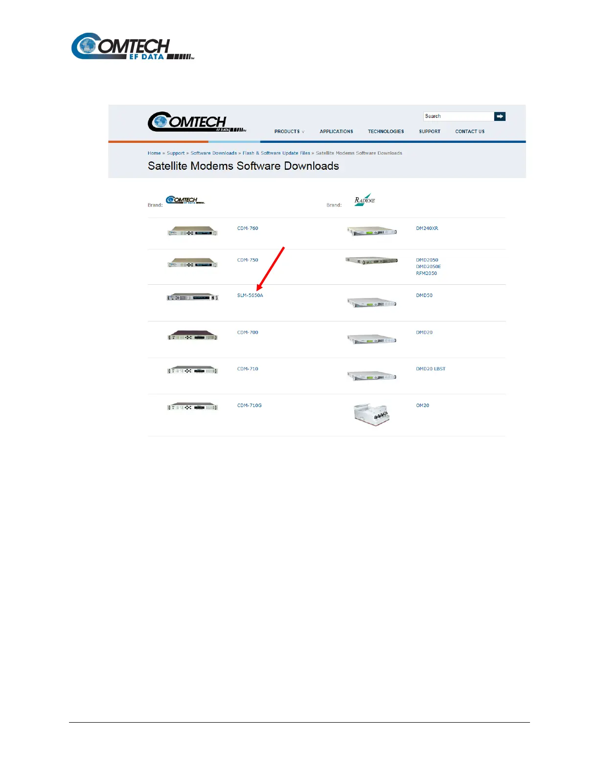 5. Select your Model from the Satellite Modems Software Downloads web page.