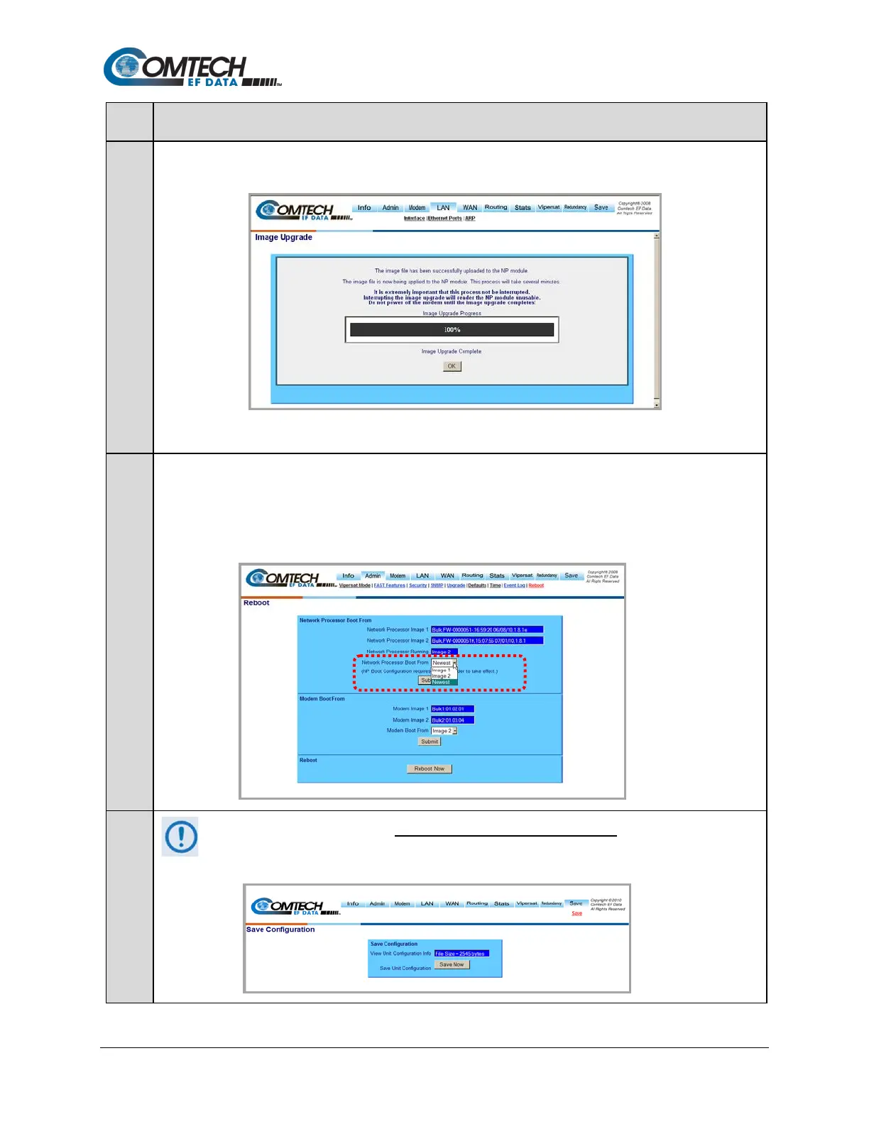 If not, open the Admin | Reboot page then, in the Network Processor Boot From section, use the drop-down