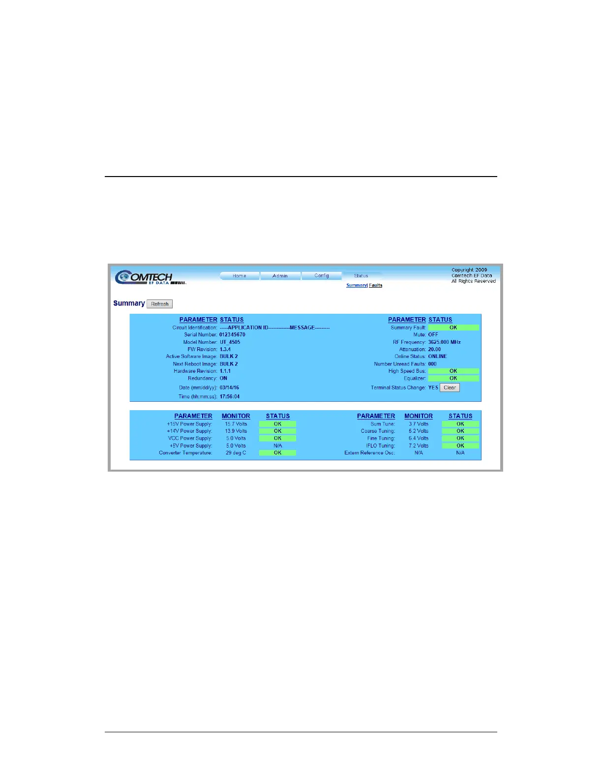 Comtech EF Data UT-4500 Series - Status; Status | Summary