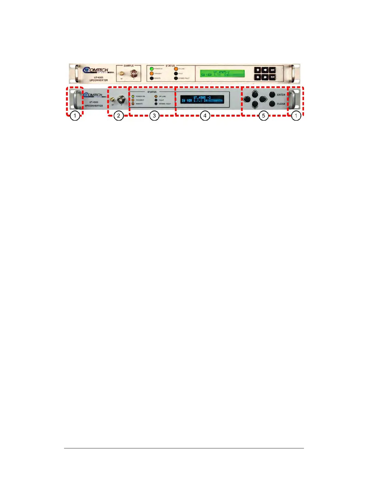 The UT-4500 front panel (Figure 1-5) provides, from left to right: