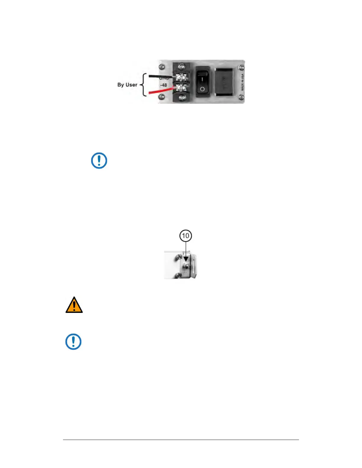 1. Connect the user-supplied ‘-48’ (+) and ‘GND’ (–) DC power leads to their