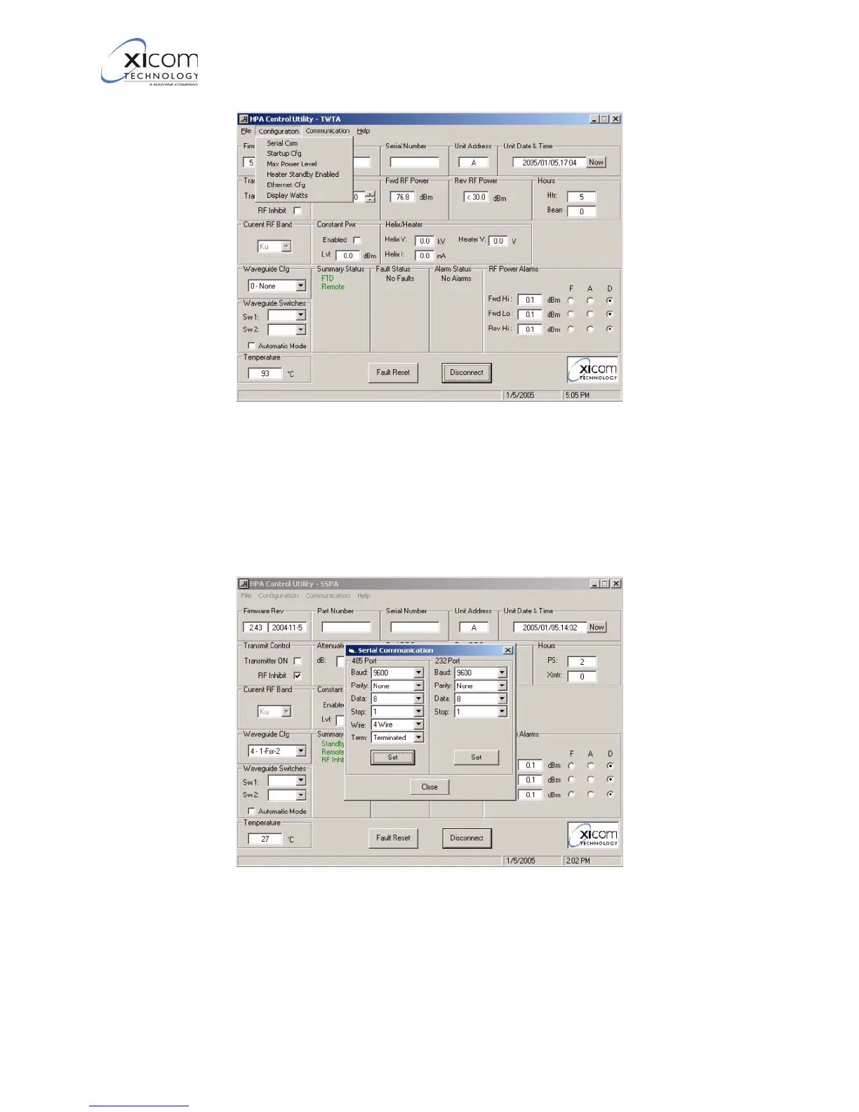 5. Selecting the “Serial Com” option presents a screen shown in