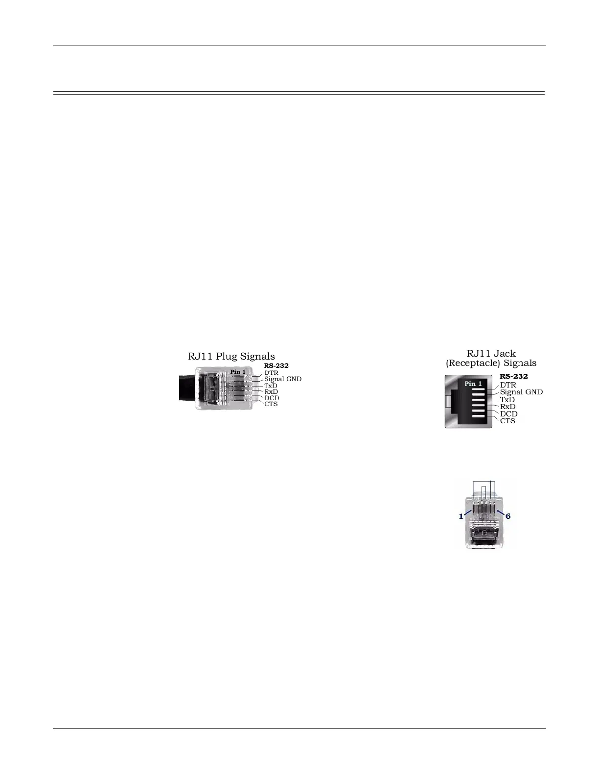 RJ11 Pinouts This topic describes pinouts for the RJ11 interface connector for an RS-232 port.