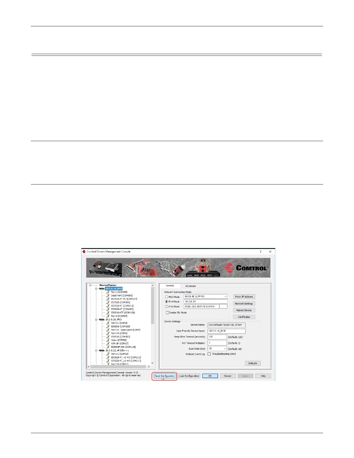 • Save the driver configuration settings so that you can load them on similar DeviceMasters to save