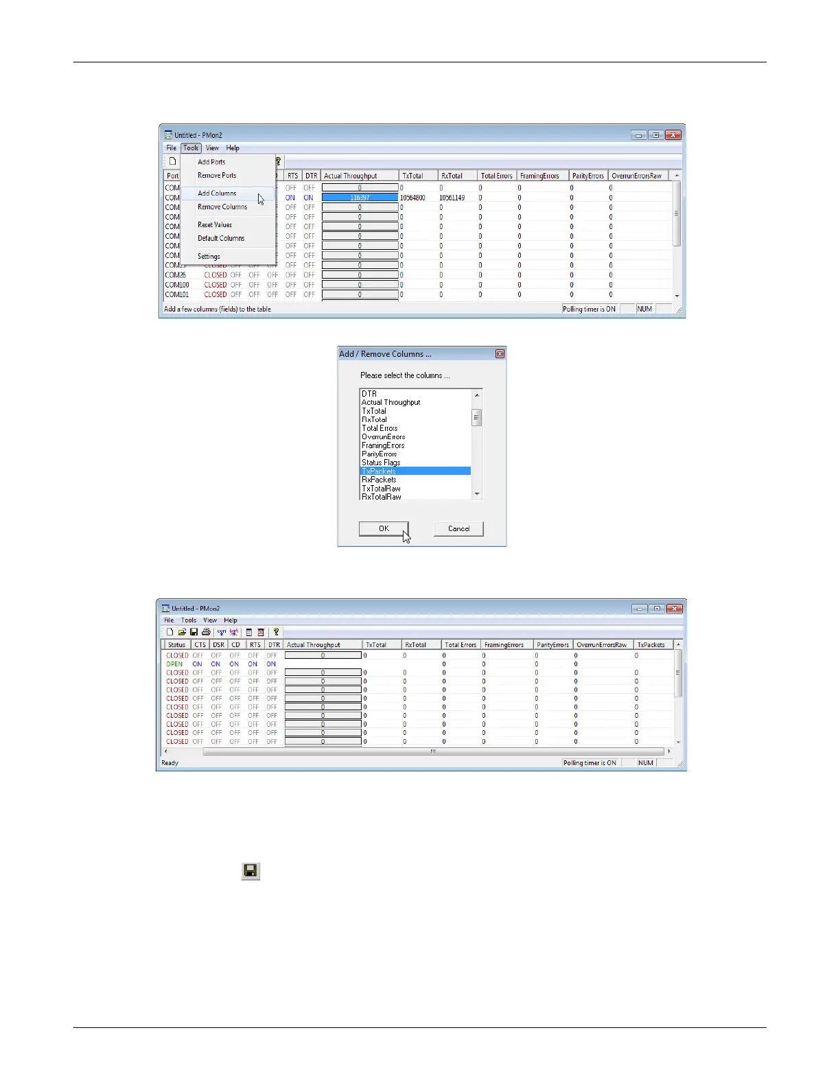 6. You can view additional statistics to Port Monitor by adding columns. Click Tools and Add Columns.