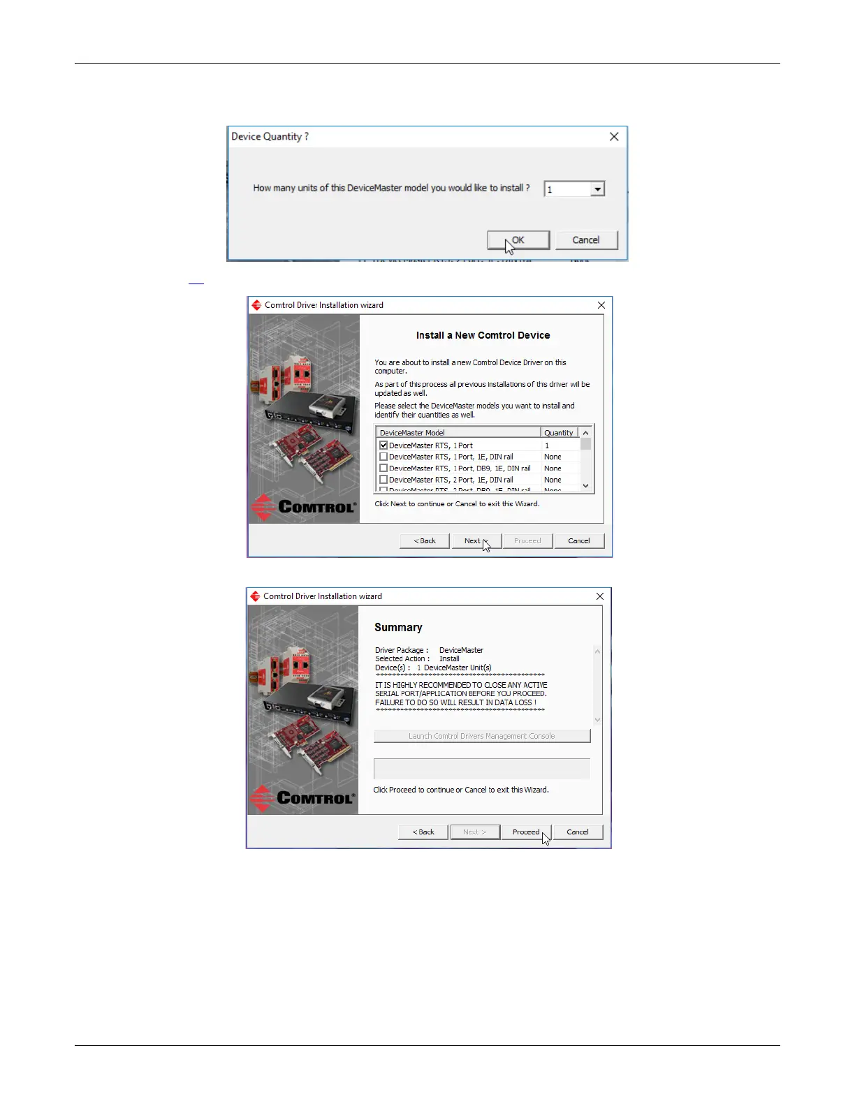 11. Enter the quantity of this DeviceMaster model that you want to install and click Ok.