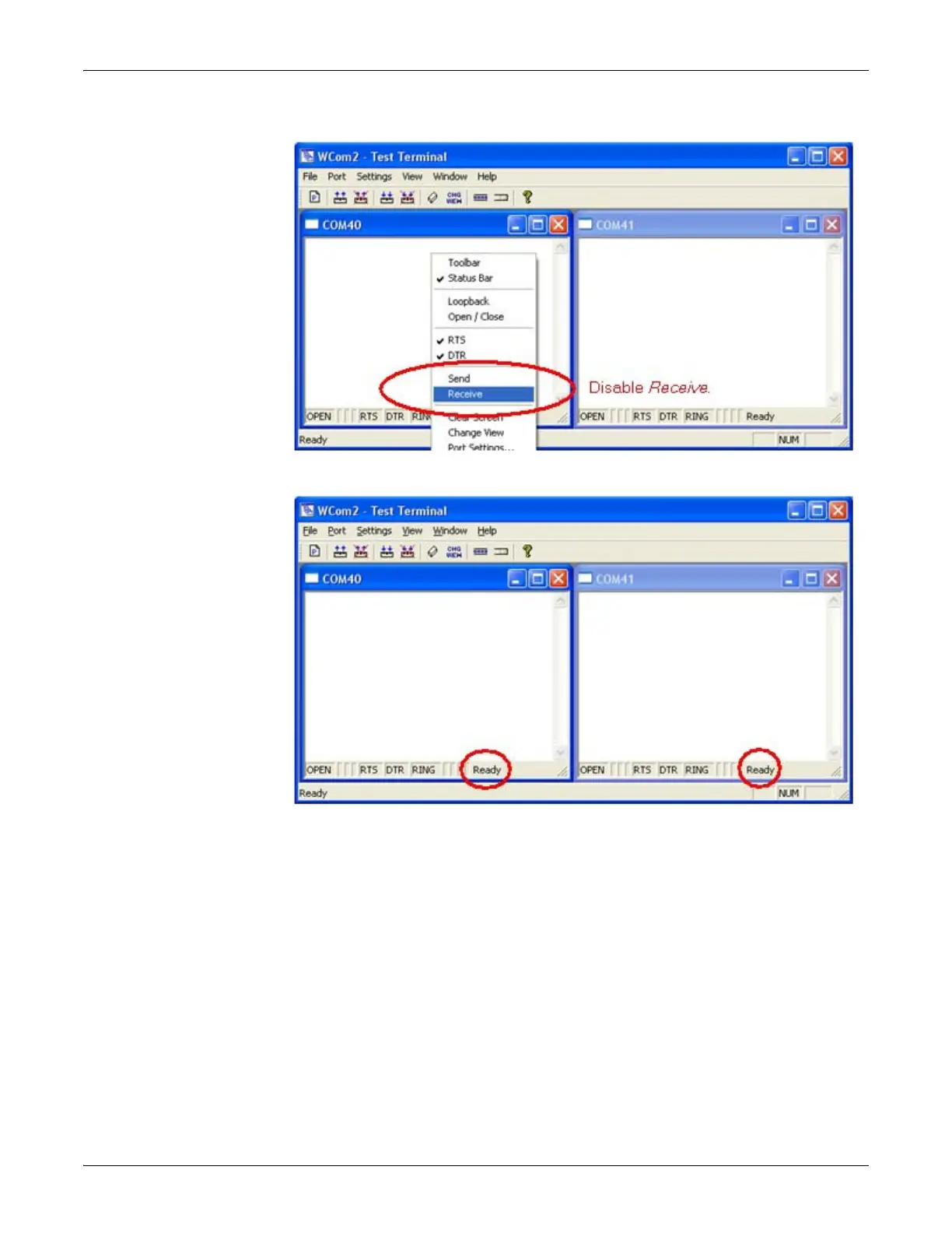 3. Right-click in both COM windows and remove the check mark for Receive.