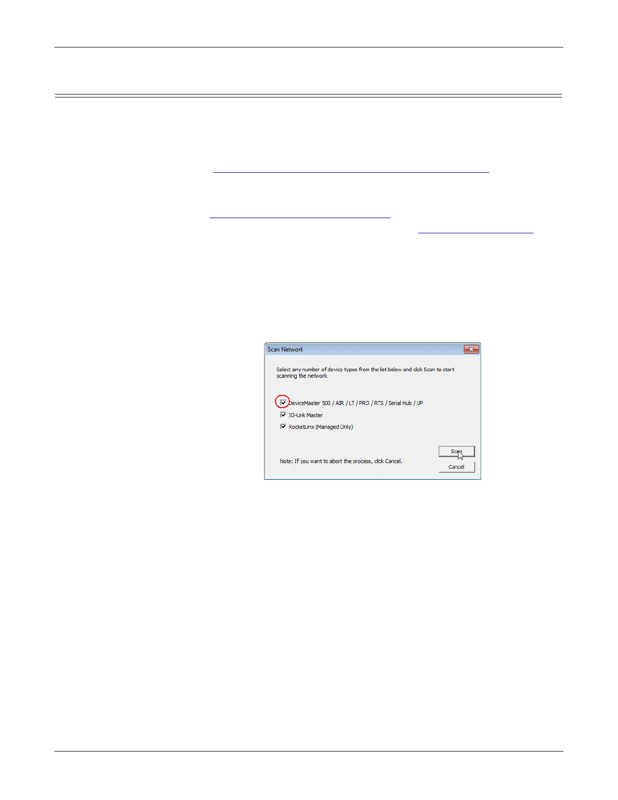 5. Click Scan to locate the Comtrol Ethernet attached products including th