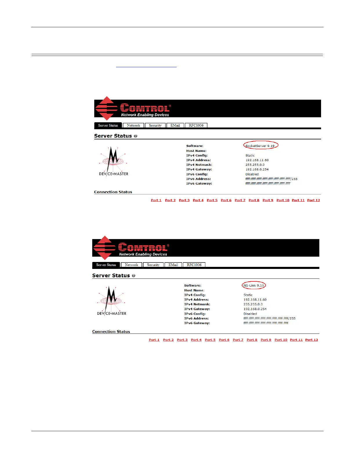 The top illustration shows the web page before a NS-Link device driver installation
