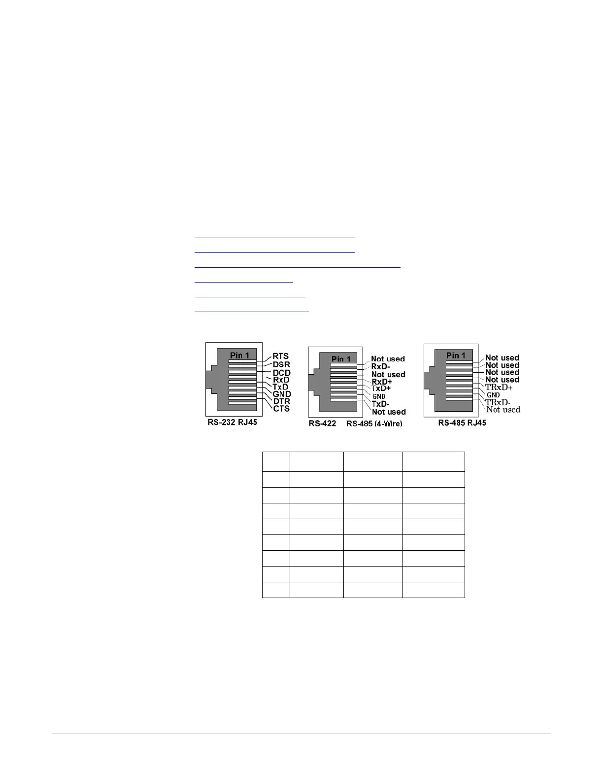 RJ45 Null-Modem Cables (RS-422) on Page 66