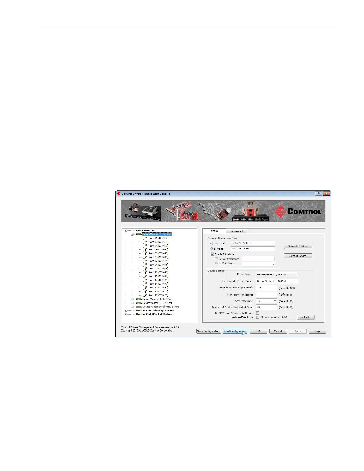 3. In the left pane, highlight the DeviceMaster LT for which you want to load the