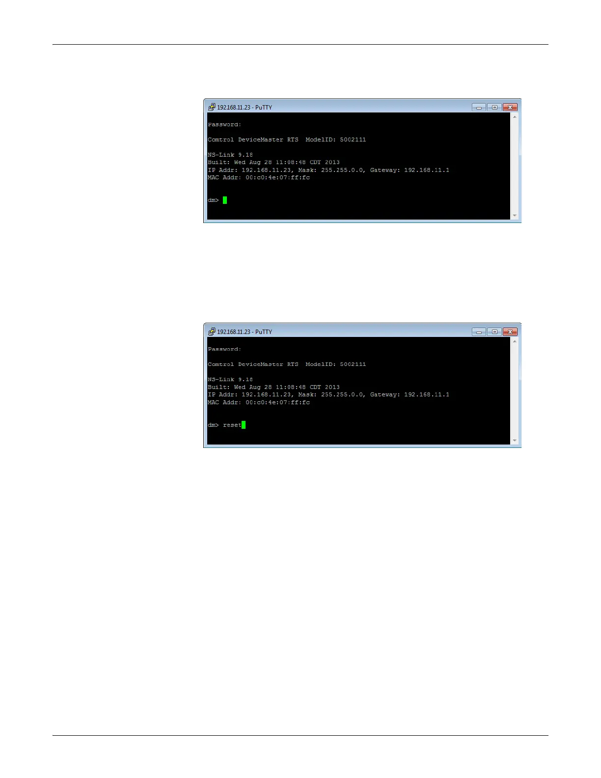 Accessing RedBoot Commands in Telnet/SSH Sessions (PortVision DX)