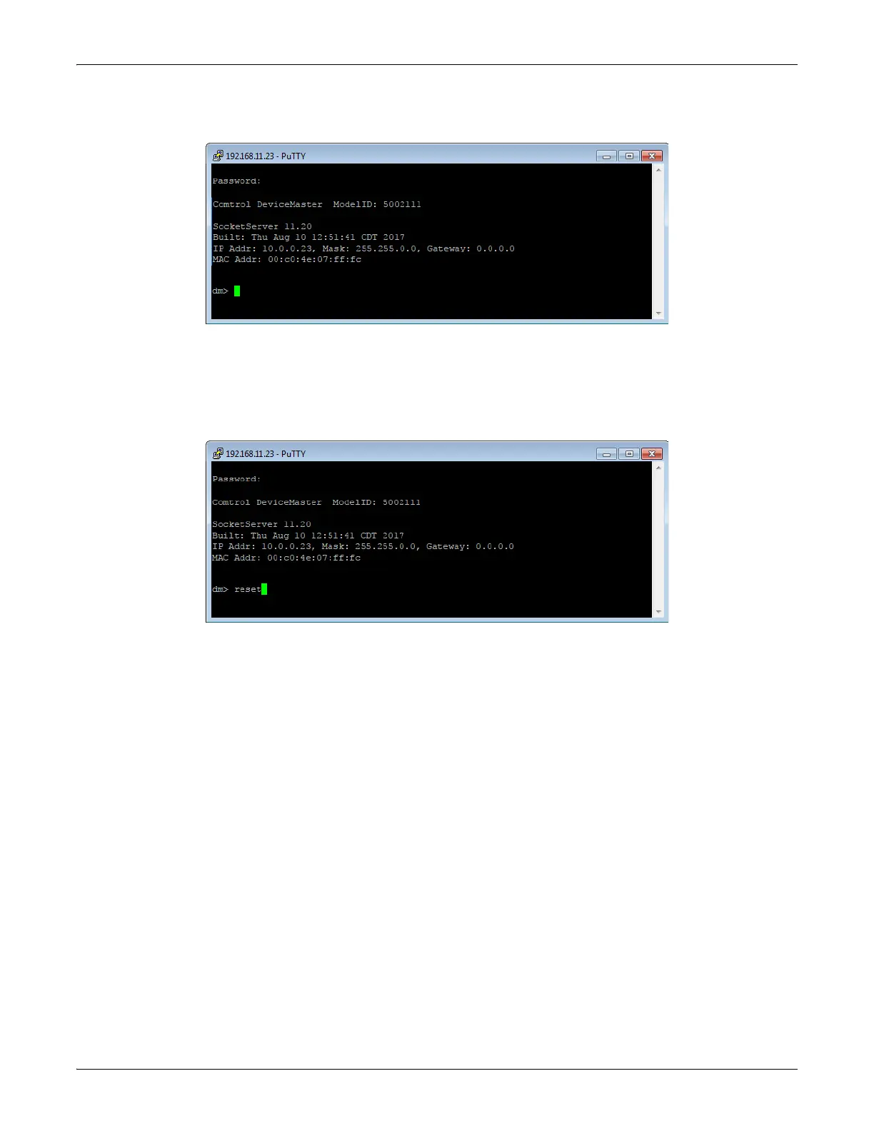 4. Type Reset, press Enter, and close the telnet session.