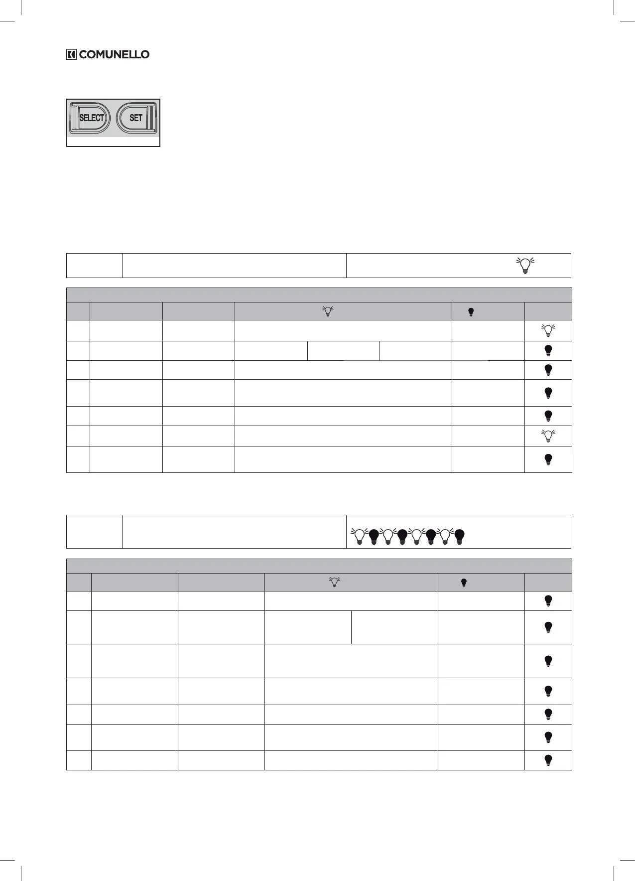 Utilizzare il tasto SELECT premendolo più volte per selezionare la funzione desiderata (accensione lampeggiante del LED corrispondente) nel