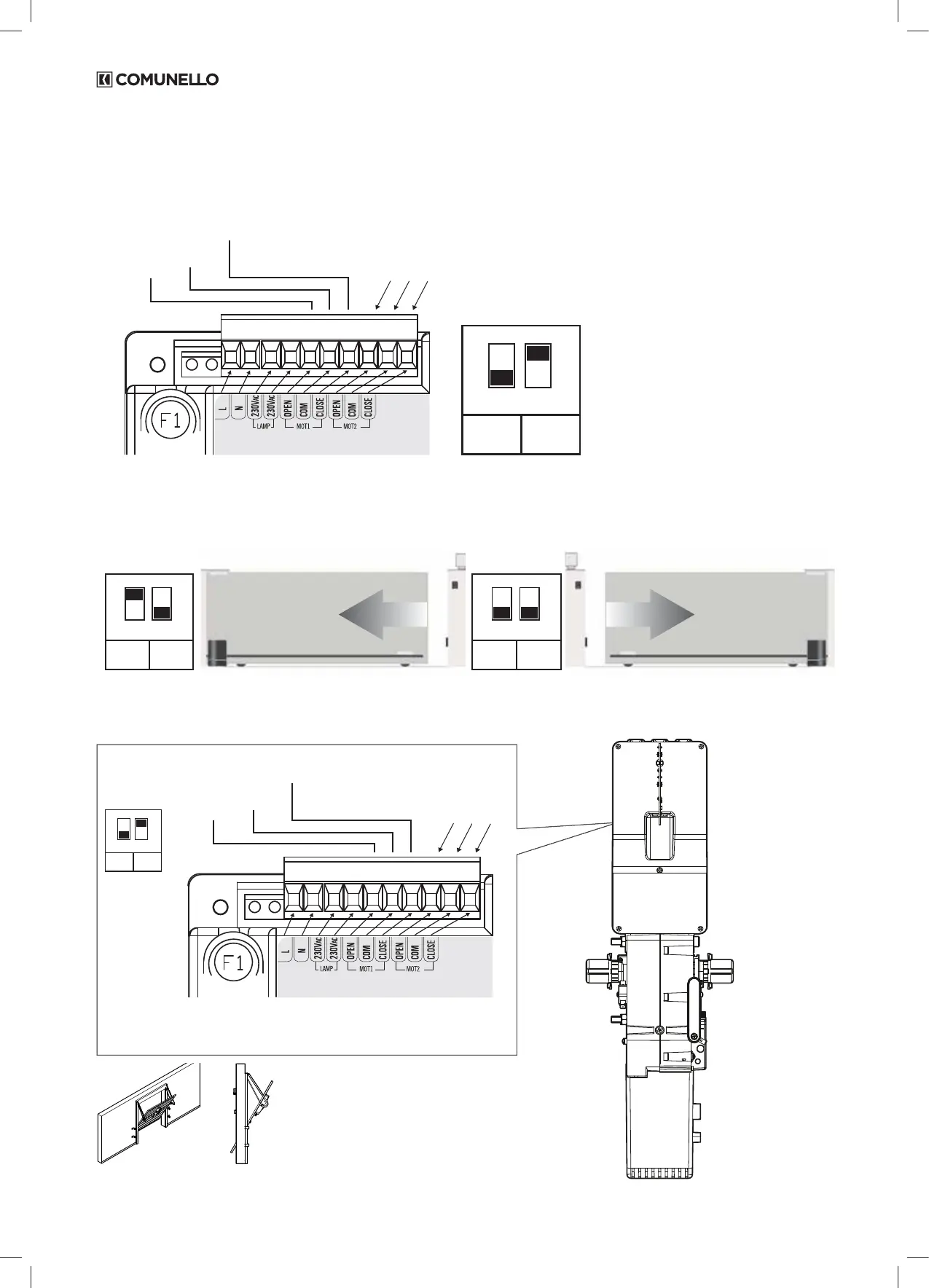 Réglage de SW2 pour avoir une ouverture à GAUCHE (vue interne) Réglage de SW2 pour avoir une ouverture à DROITE (vue interne)