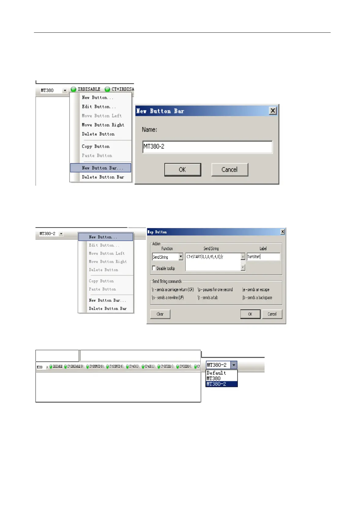b) Create a new button toolbar and add a button to the toolbar named MT380-2.