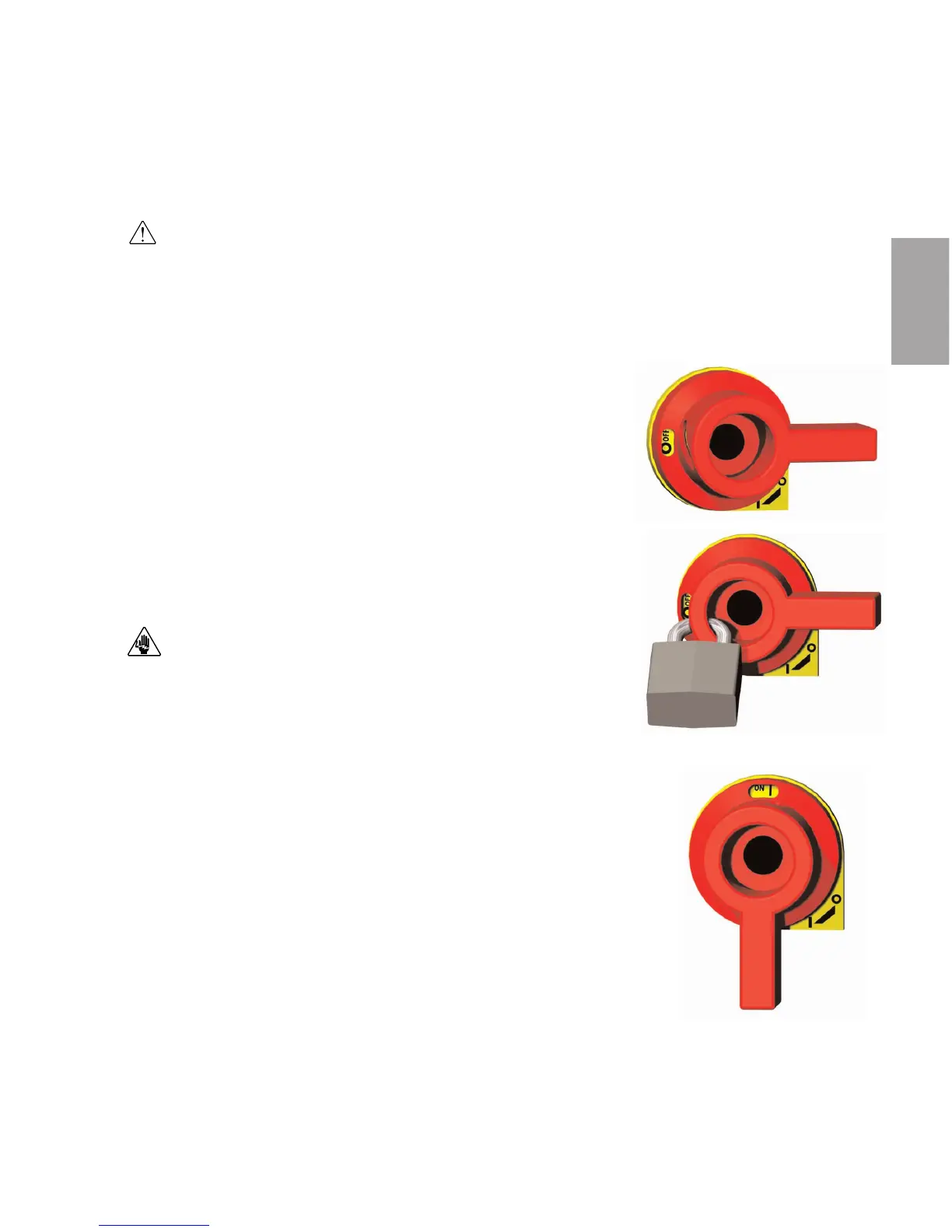 cal power sources to prevent injury from unexpected energization or start-up. A lockable device has been provid-