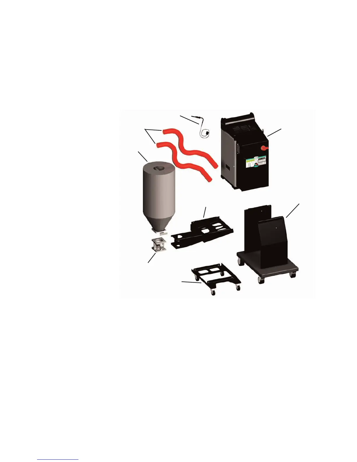 1 Carefully remove the dryer and components from their shipping containers,