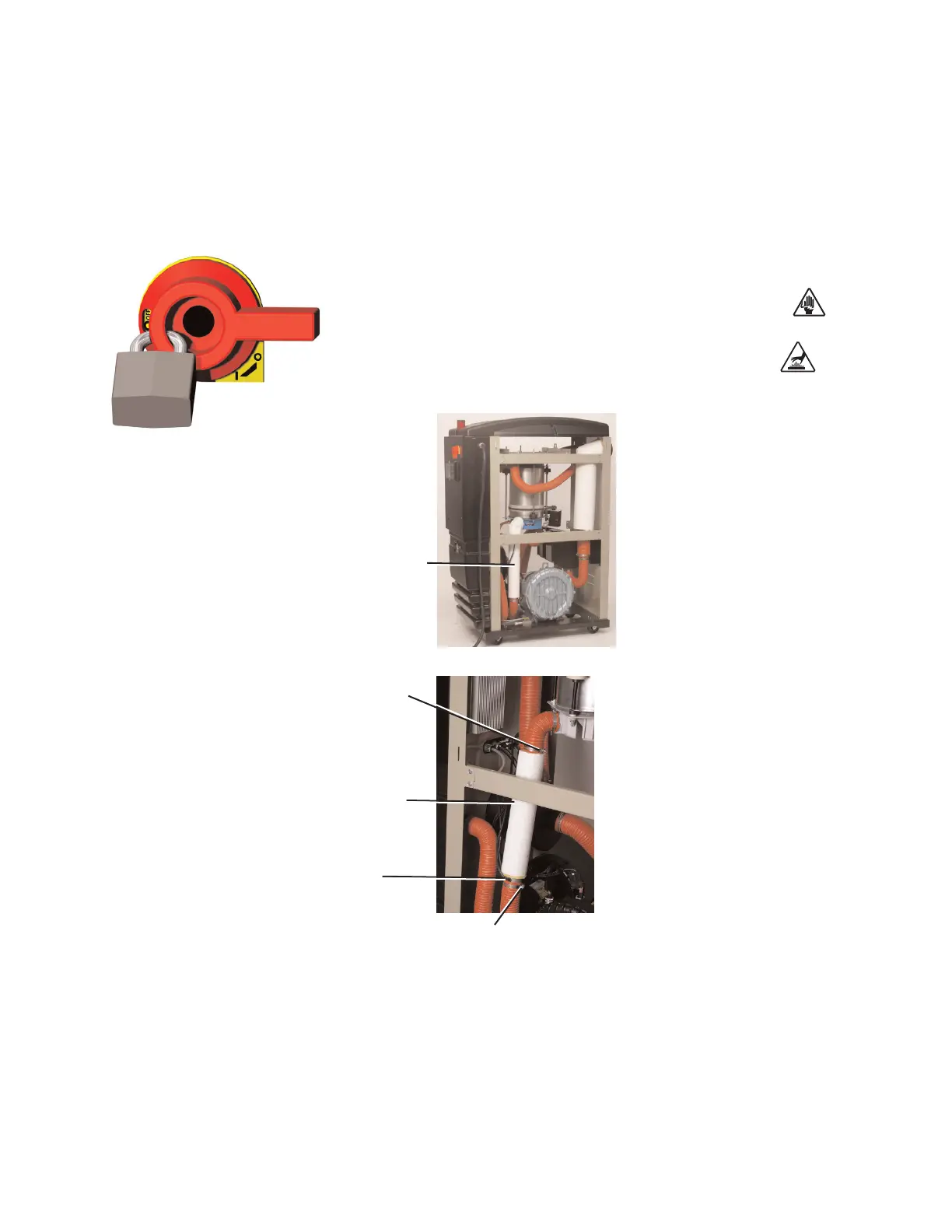 Stop the dryer, disconnect the power, and follow proper lockout