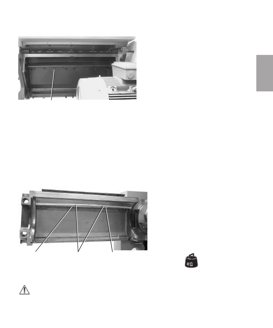 The socket cap screws which fasten the support rules and the fixed knife pair, are