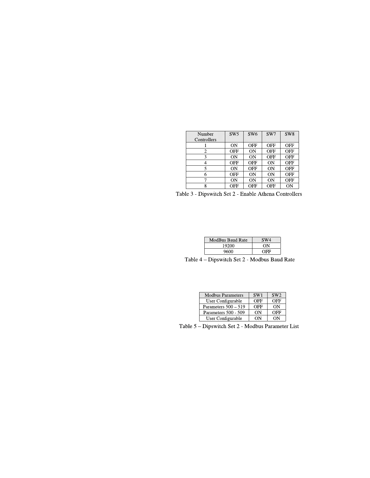 Dip switch set 2 identifies the Modbus addresses of controllers connected to the
