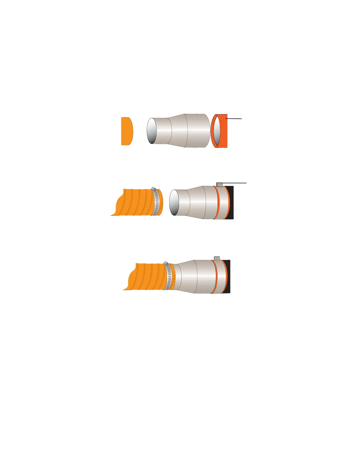 2 Place hose adapter inside high temperature gasket flush to the dryer outlet, secure