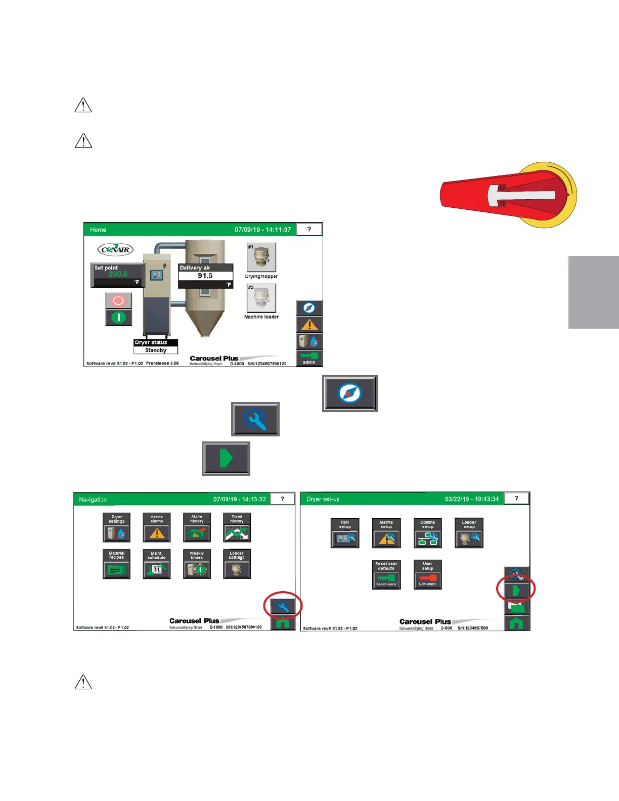 1 Turn on the main power to the dryer. Make sure the dryer’s disconnect dial is in the ON