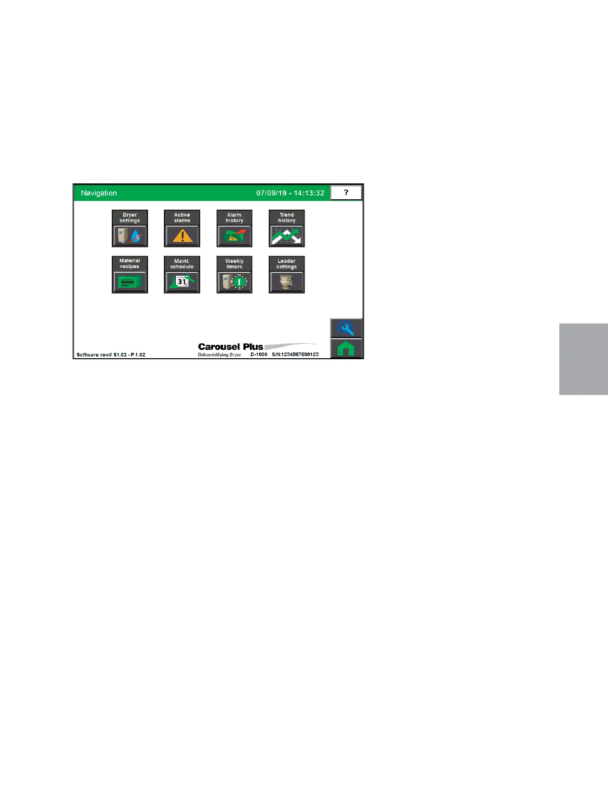 All beveled grey buttons on the DC-C control screen are selectable and will direct you to an-
